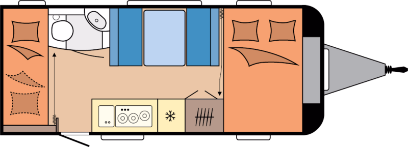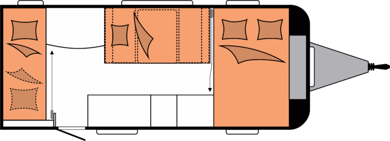 • Kinderbetten (Etagenbett) im Heck (2x ca. 200 x 70 cm)